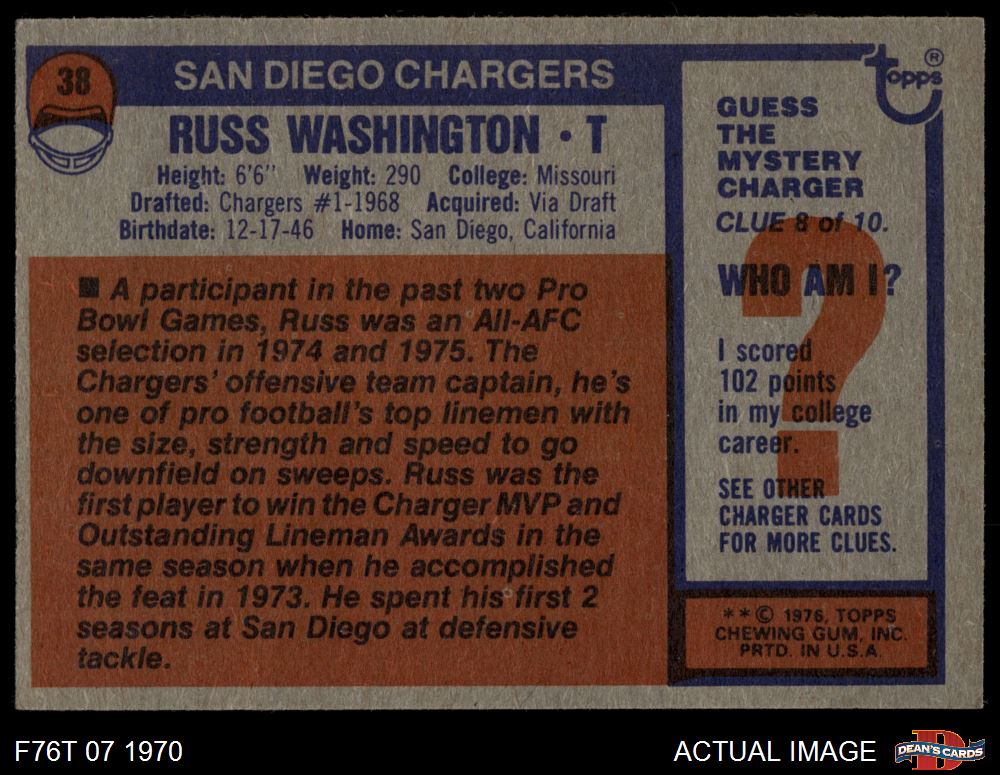 1976 Topps #38 Russ Washington 4 - VG/EX