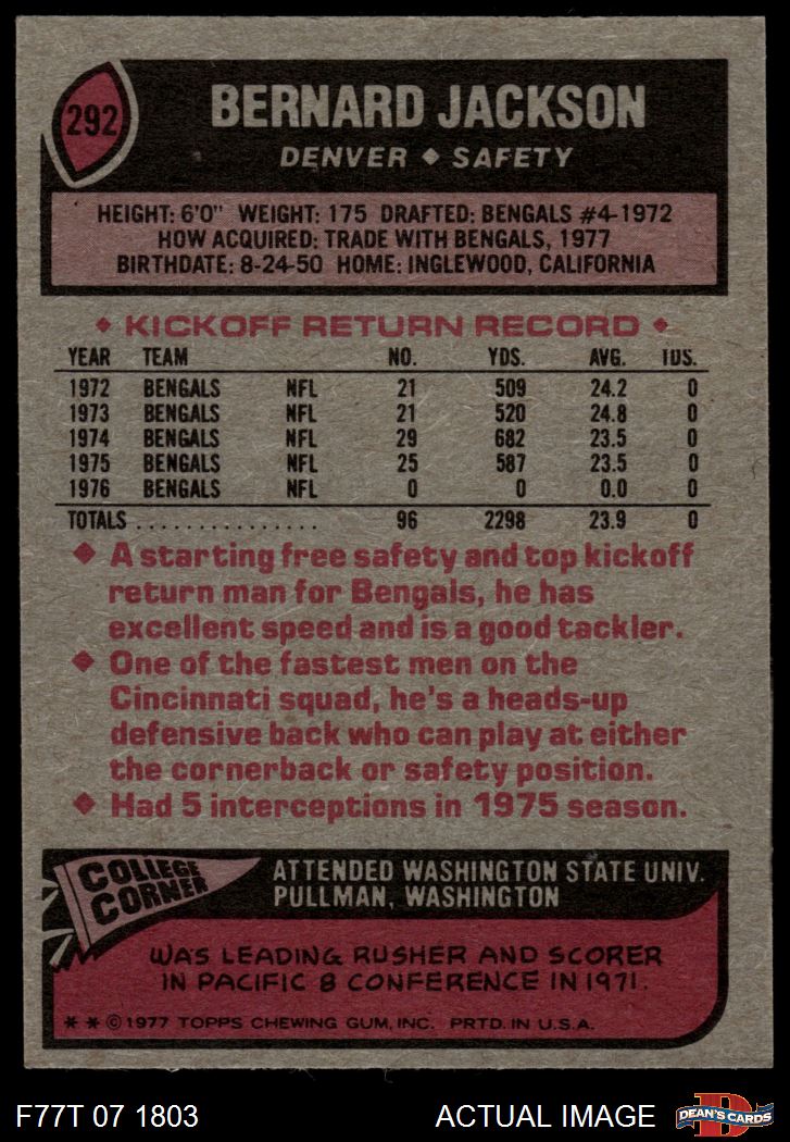 1977 Topps #292 Bernard Jackson 7 - NM