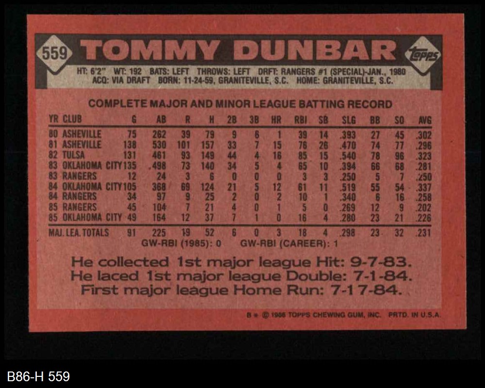 1986 Topps Baseball Cards (4,656 available)1986 Topps Rangers (374 available)