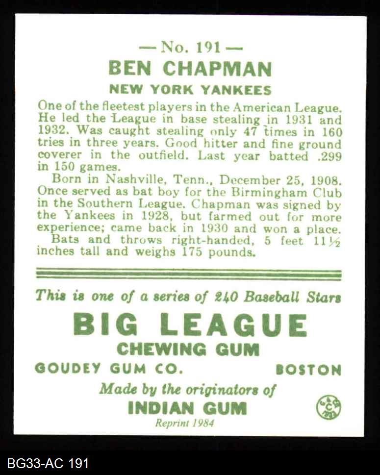 1933 Goudey Reprint (1,589 available)1933 Goudey Reprint Yankees (69 available)