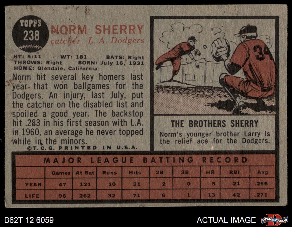 1962 Topps #238 Norm Sherry 1.5 - FAIR