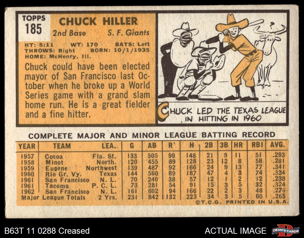 1963 Topps #185 Chuck Hiller