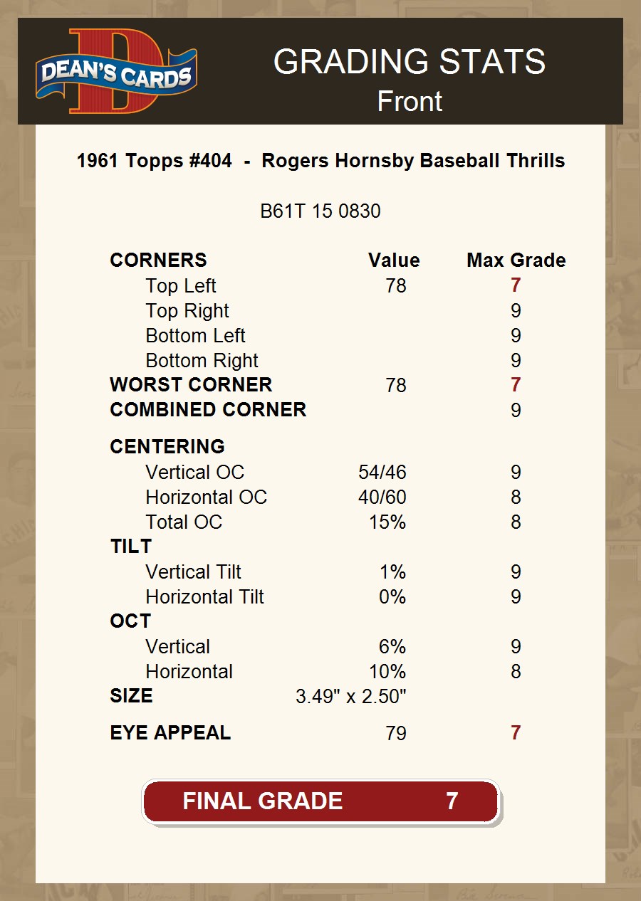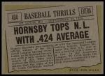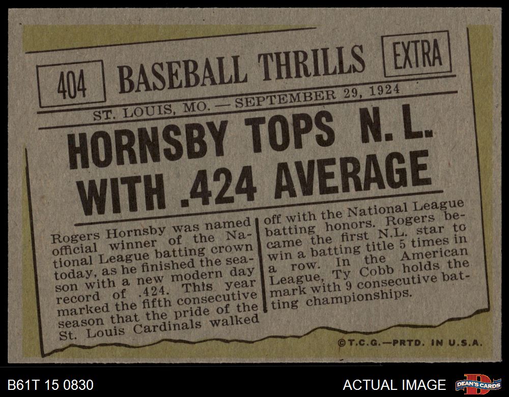 1961 Topps #404 - Rogers Hornsby Baseball Thrills 7 - NM