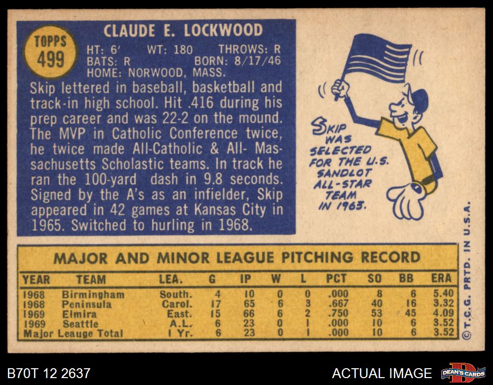 1970 Topps #499 Skip Lockwood 7 - NM