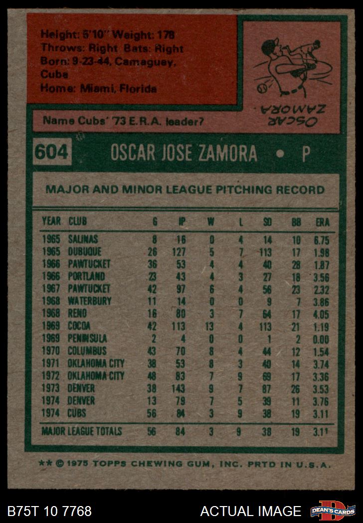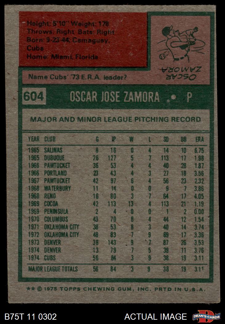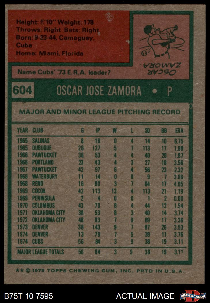 1975 Topps #604 Oscar Zamora