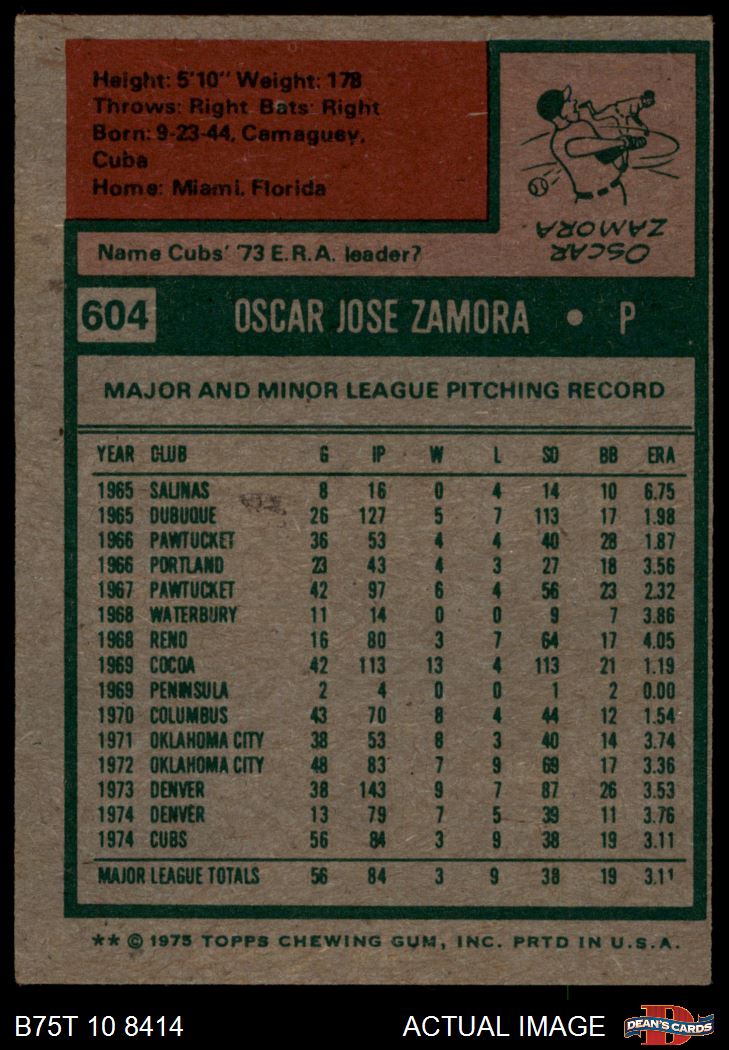 1975 Topps #604 Oscar Zamora 4 - VG/EX