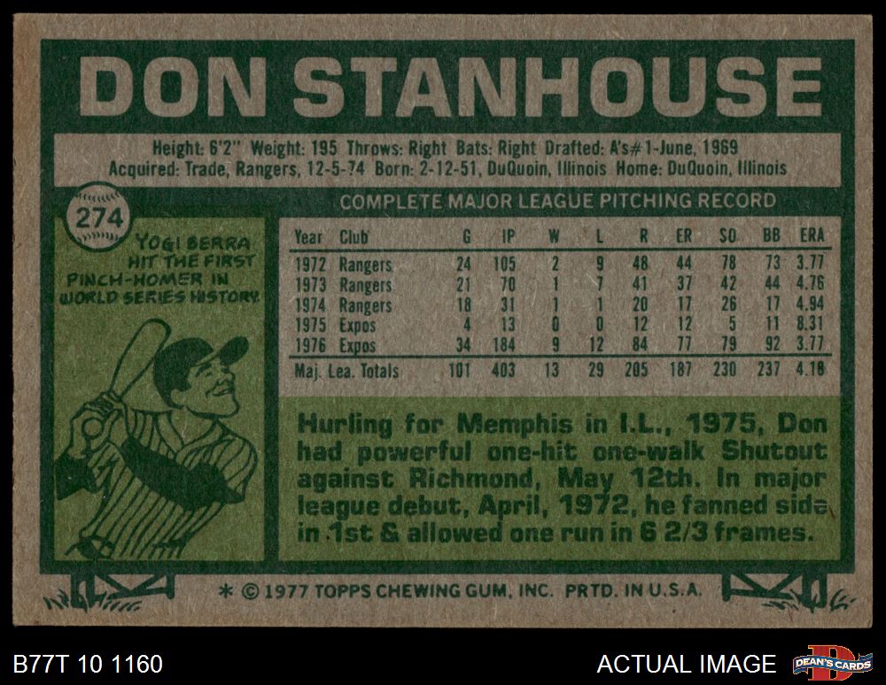 1977 Topps #274 Don Stanhouse