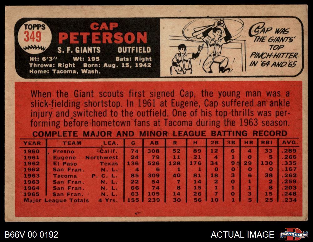 1966 Topps Venezuelan #349 Cap Peterson 4 - VG/EX