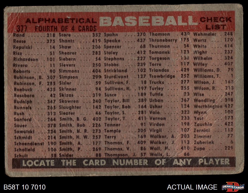 1958 Topps #377 ALP Braves Team Checklist 1 - POOR