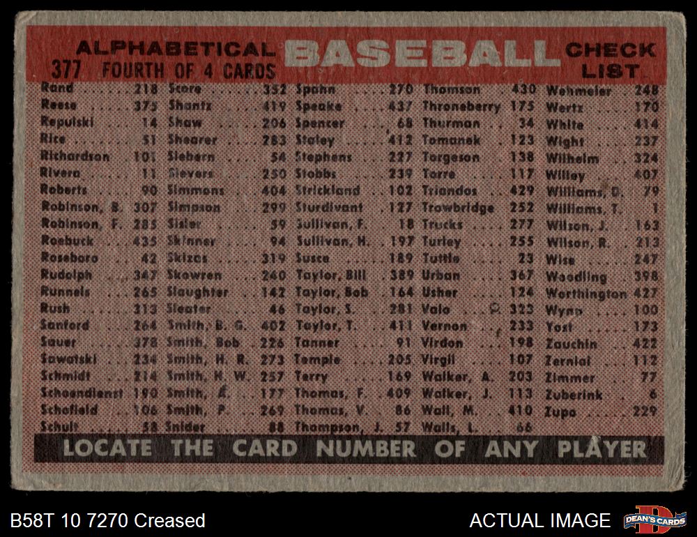 1958 Topps #377 ALP Braves Team Checklist 2 - GOOD