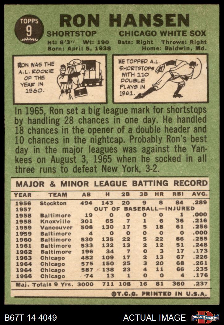 1967 Topps #9 Ron Hansen 6 - EX/MT