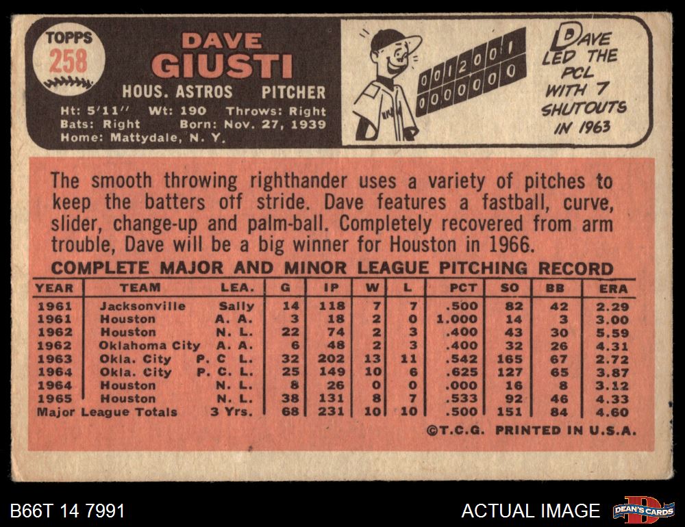 1966 Topps #258 Dave Giusti 2 - GOOD