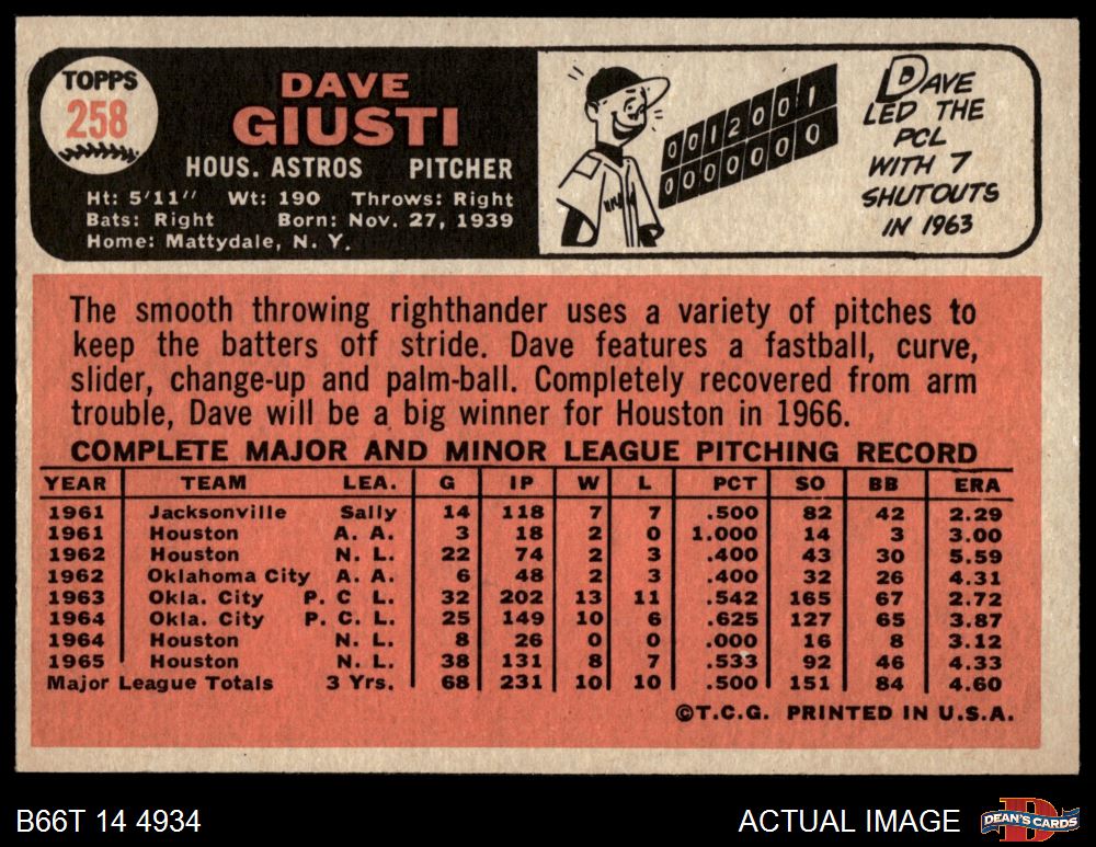 1966 Topps #258 Dave Giusti 4 - VG/EX