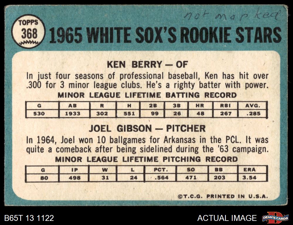 1965 Topps #368 - Ken Berry / Joel Gibson White Sox Rookies 1.5 - FAIR