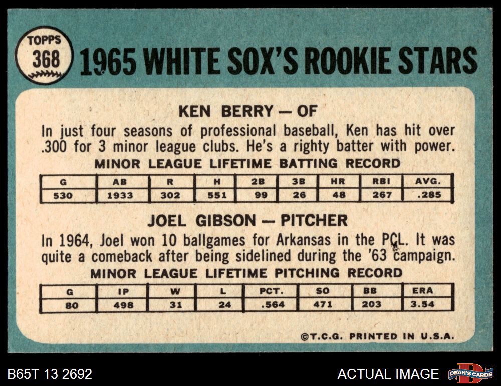 1965 Topps #368 - Ken Berry / Joel Gibson White Sox Rookies 7 - NM