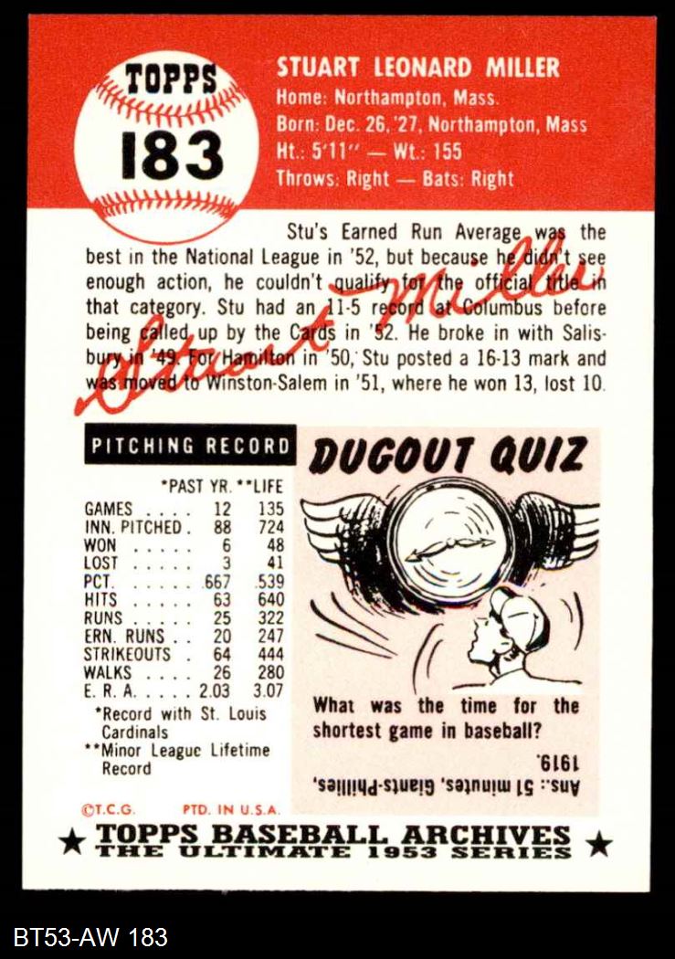 1953 Topps Archives #183 Stu Miller 8 - NM/MT