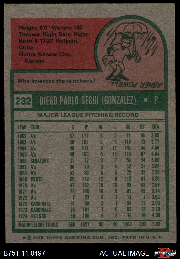 1975 Topps #232 Diego Segui