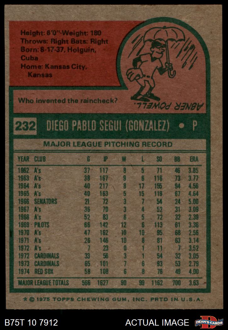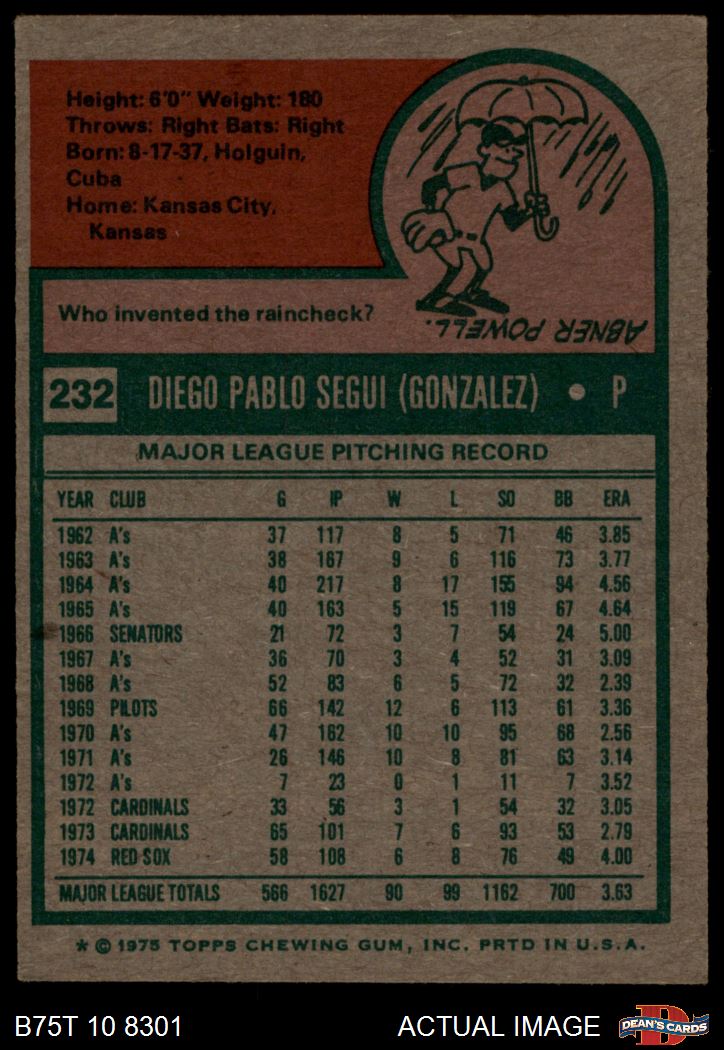 1975 Topps #232 Diego Segui 6 - EX/MT