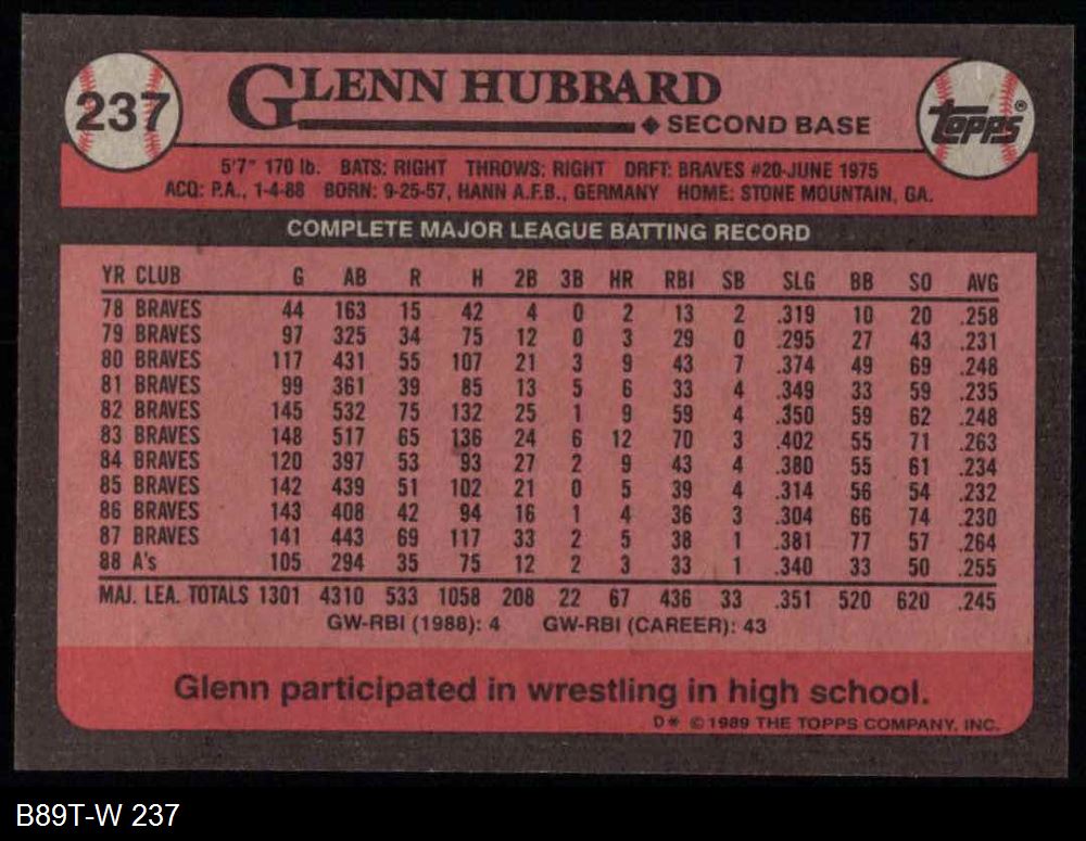 1989 Topps #237 Glenn Hubbard 8 - NM/MT