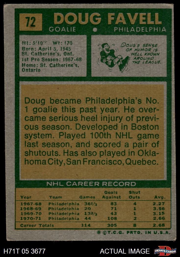 1971 Topps #72 Doug Favell 3 - VG