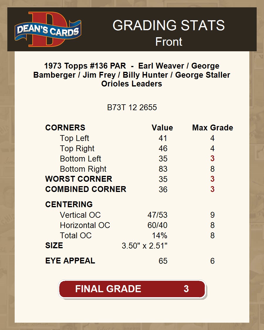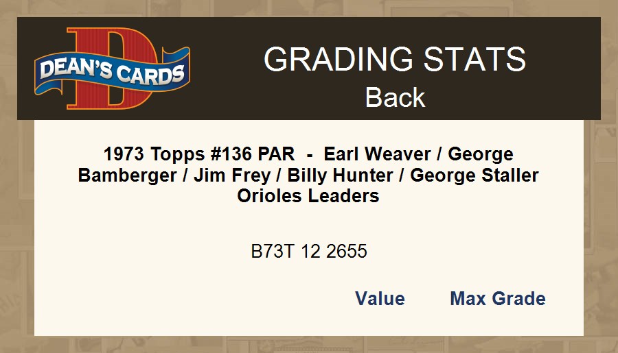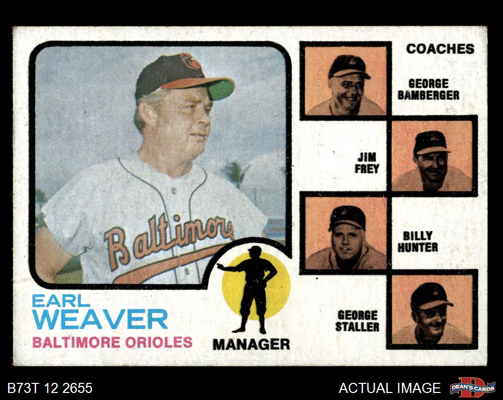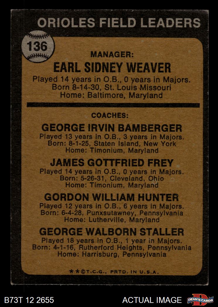 1973 Topps #136 PAR - Earl Weaver / George Bamberger / Jim Frey / Billy Hunter / George Staller Orioles Leaders 3 - VG