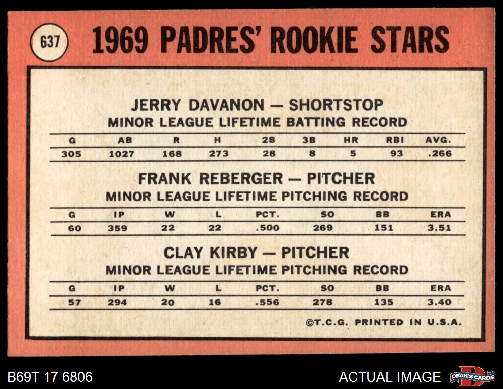 1969 Topps #637 - Jerry DaVanon / Clay Kirby / Frank Reberger Padres Rookies 6 - EX/MT
