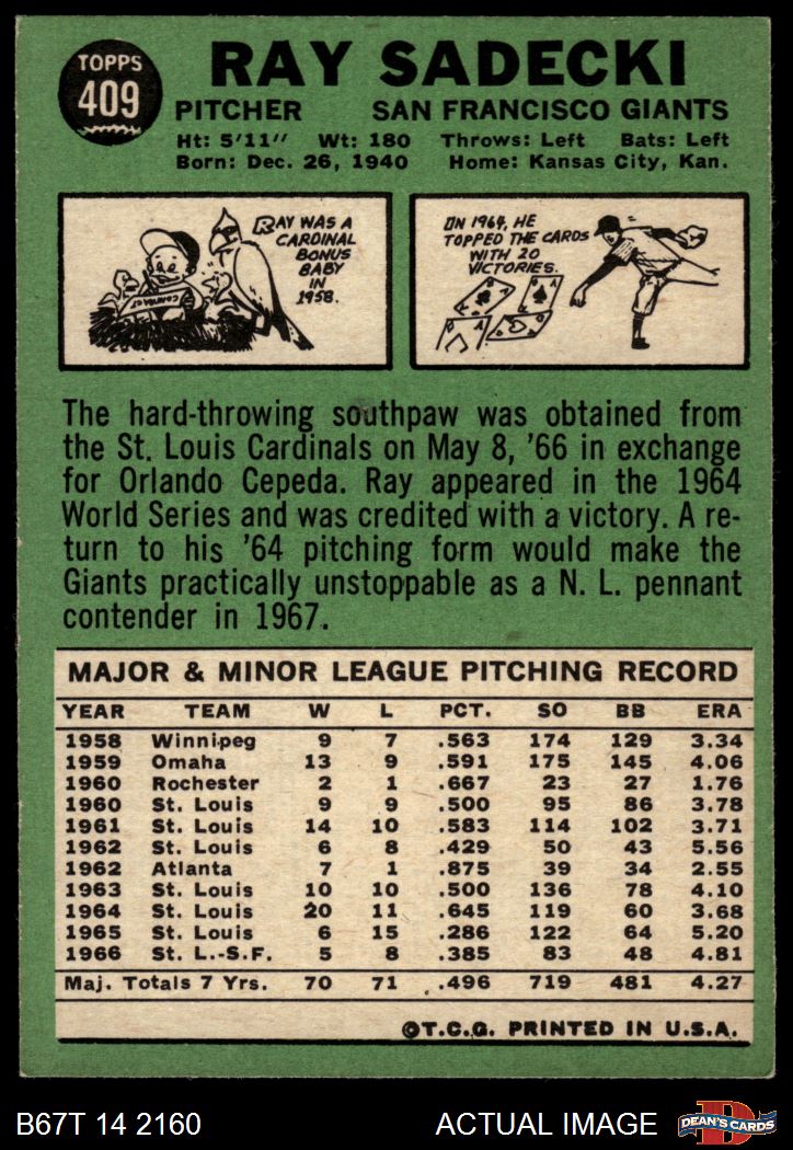 1967 Topps #409 Ray Sadecki 4 - VG/EX