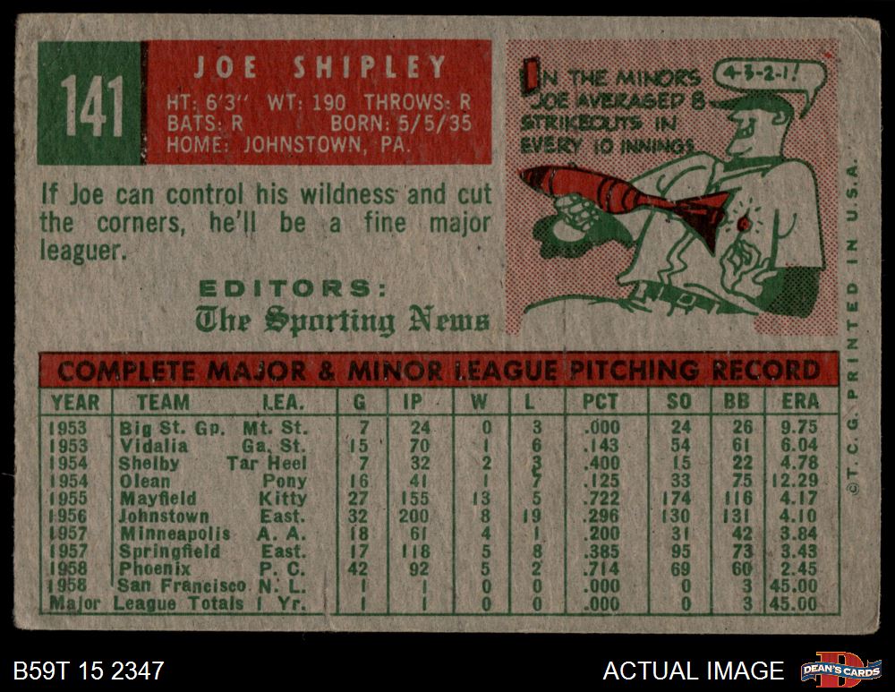 1959 Topps #141 Joe Shipley