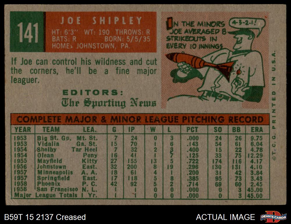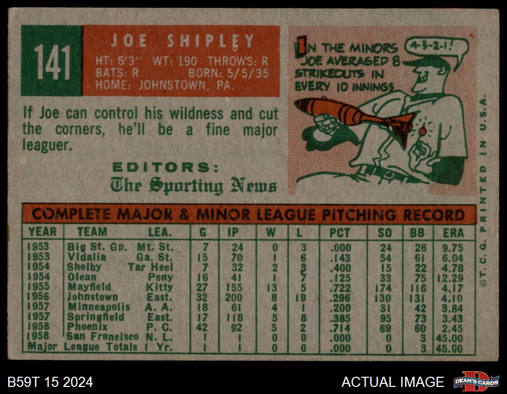 1959 Topps #141 Joe Shipley 3 - VG