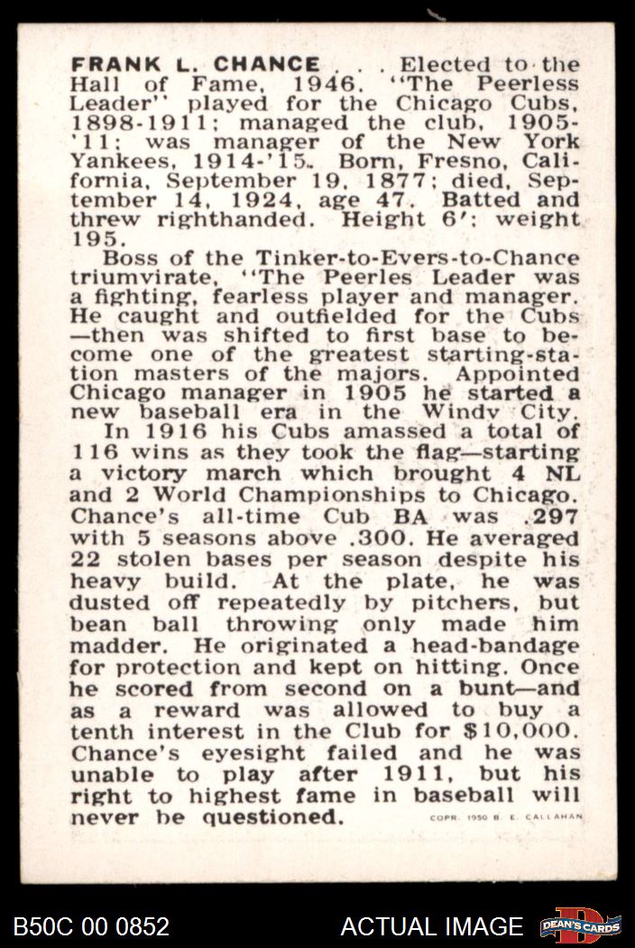 1950 Callahan Hall of Fame Frank Chance 7 - NM