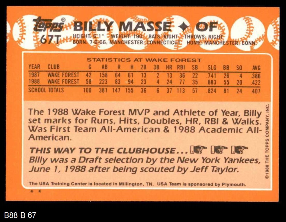 1988 Topps Traded #67 T - Billy Masse Team USA 8 - NM/MT