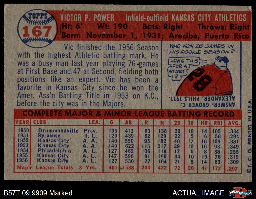 1957 Topps #167 Vic Power 1.5 - FAIR