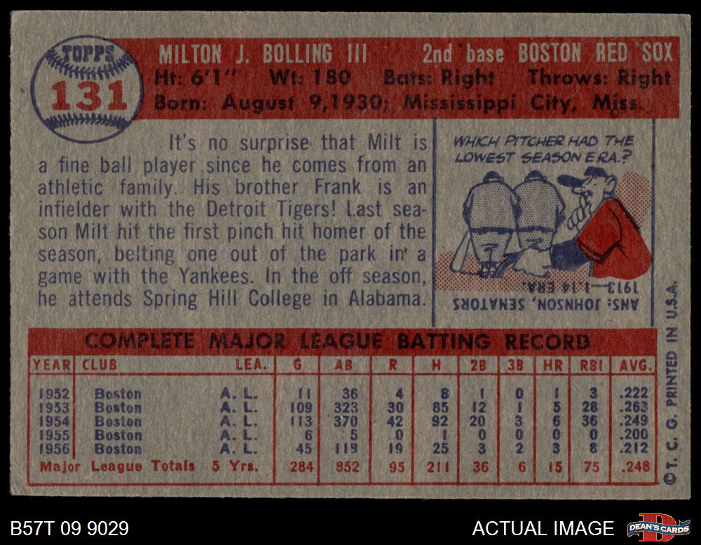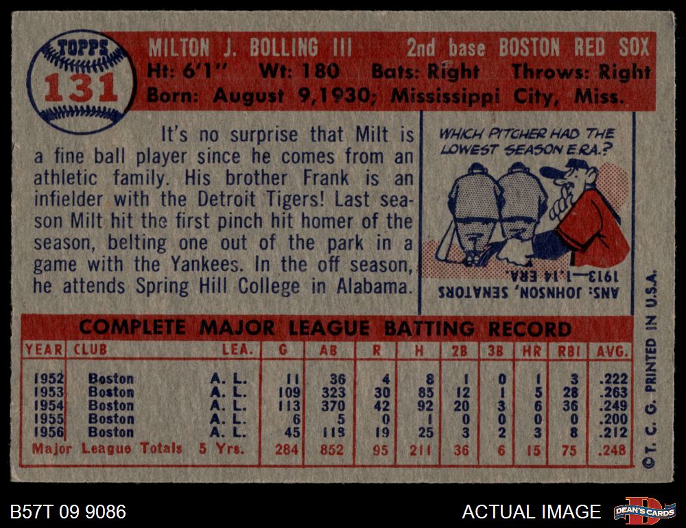 1957 Topps #131 Milt Bolling 4 - VG/EX