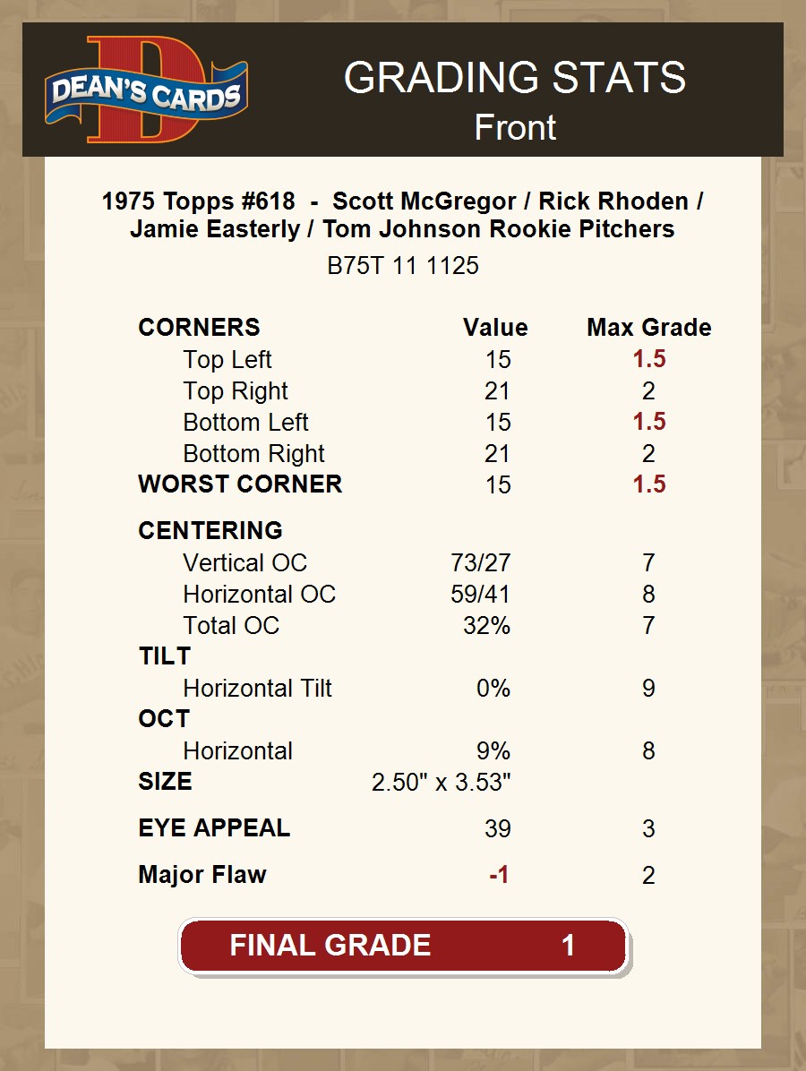 1975 Topps #618 - Scott McGregor / Rick Rhoden / Jamie Easterly / Tom Johnson Rookie Pitchers 1 - POOR
