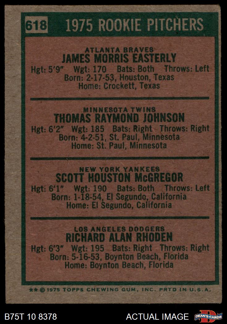 1975 Topps #618 - Scott McGregor / Rick Rhoden / Jamie Easterly / Tom Johnson Rookie Pitchers 3 - VG