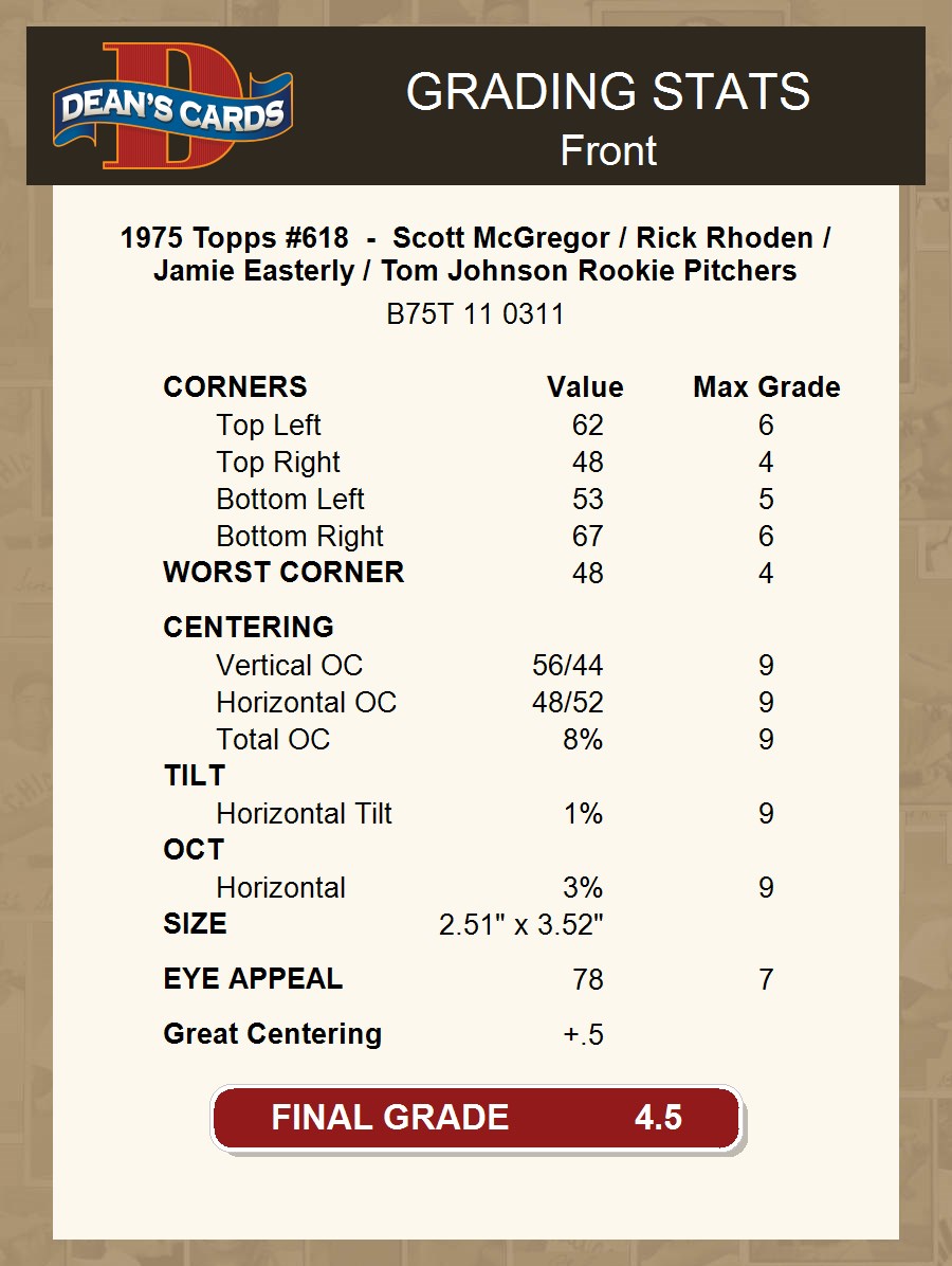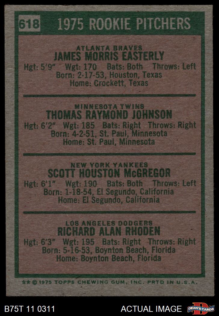1975 Topps #618 - Scott McGregor / Rick Rhoden / Jamie Easterly / Tom Johnson Rookie Pitchers 4.5 - VG/EX+