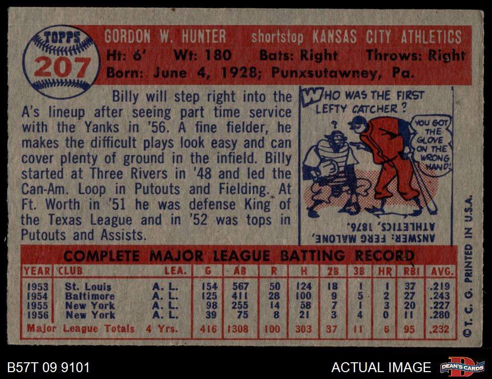 1957 Topps #207 Billy Hunter