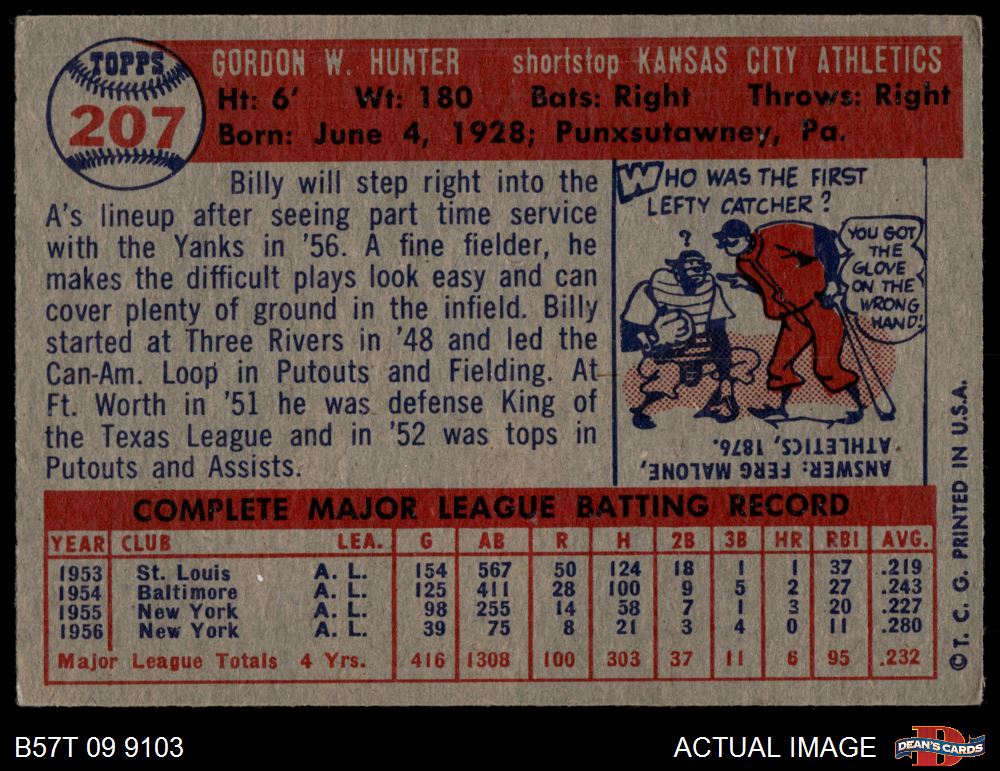 1957 Topps #207 Billy Hunter 4.5 - VG/EX+