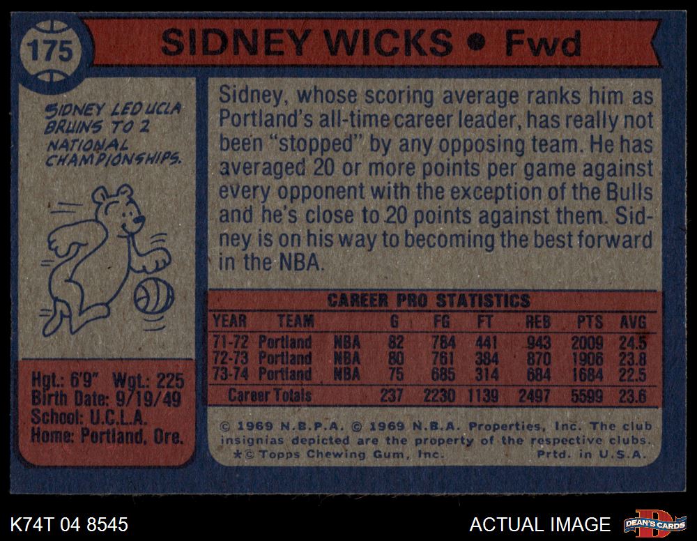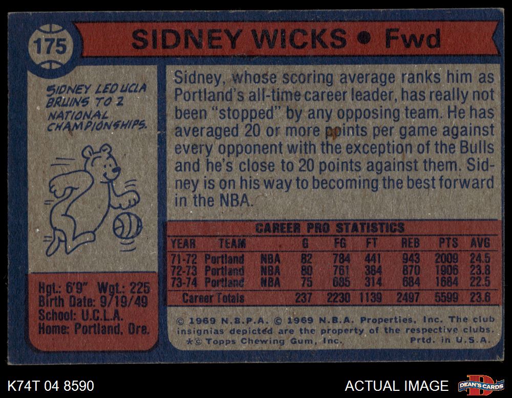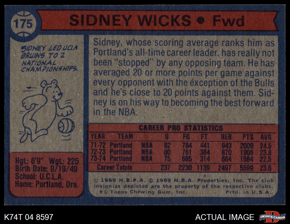 1974 Topps #175 Sidney Wicks
