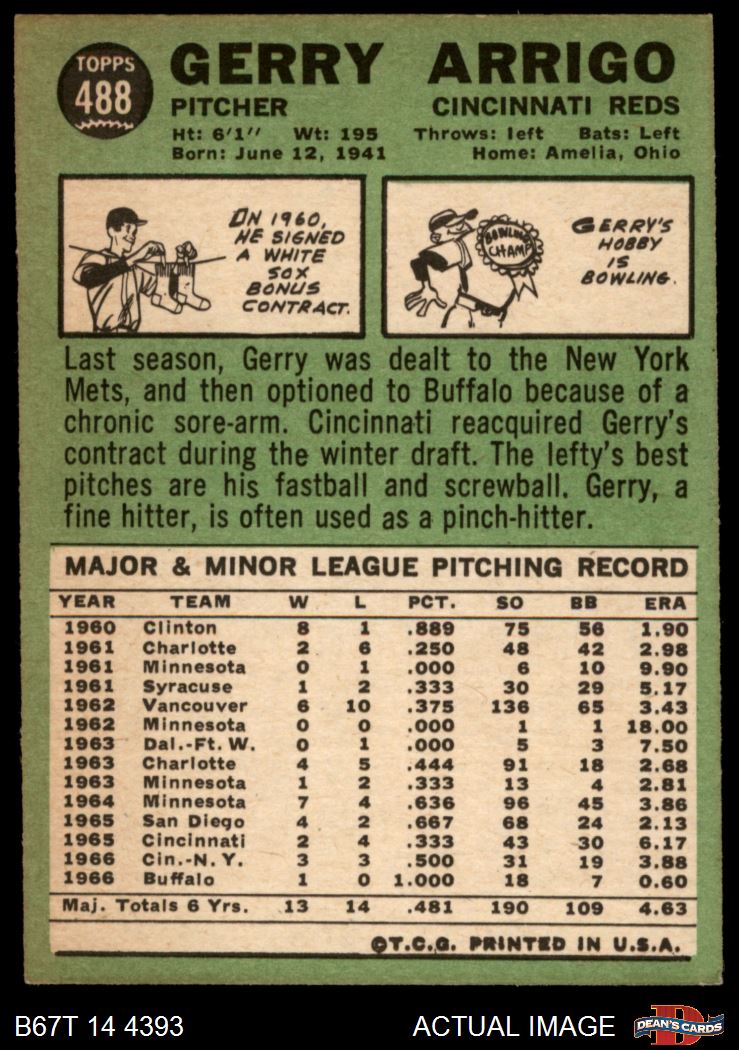 1967 Topps #488 Gerry Arrigo