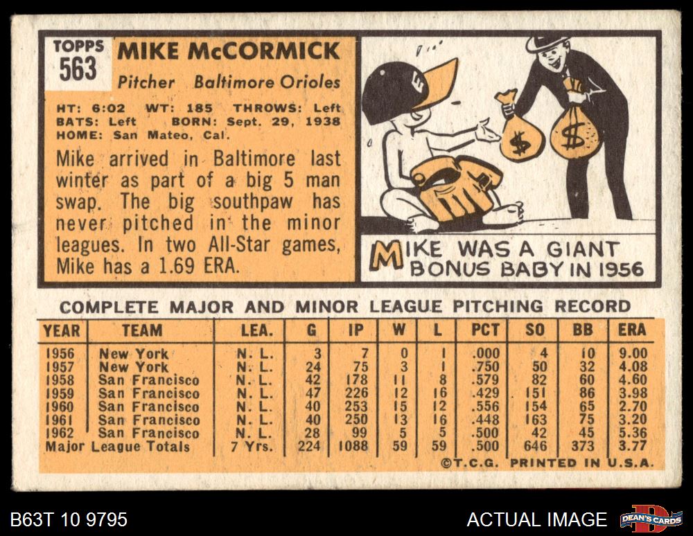 1963 Topps #563 Mike McCormick 4.5 - VG/EX+
