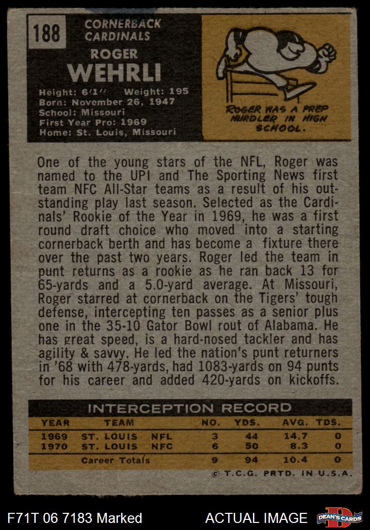 1971 Topps #188 Roger Wehrli 1.5 - FAIR