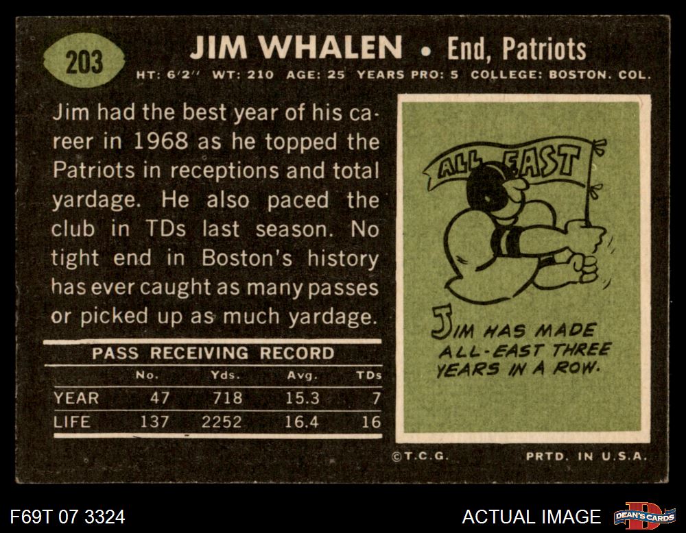 1969 Topps #203 Jim Whalen 3 - VG