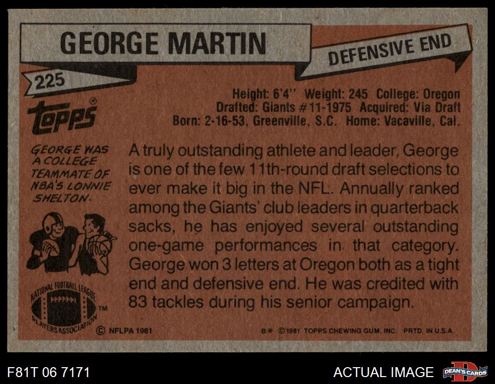 1981 Topps #225 George Martin 5 - EX