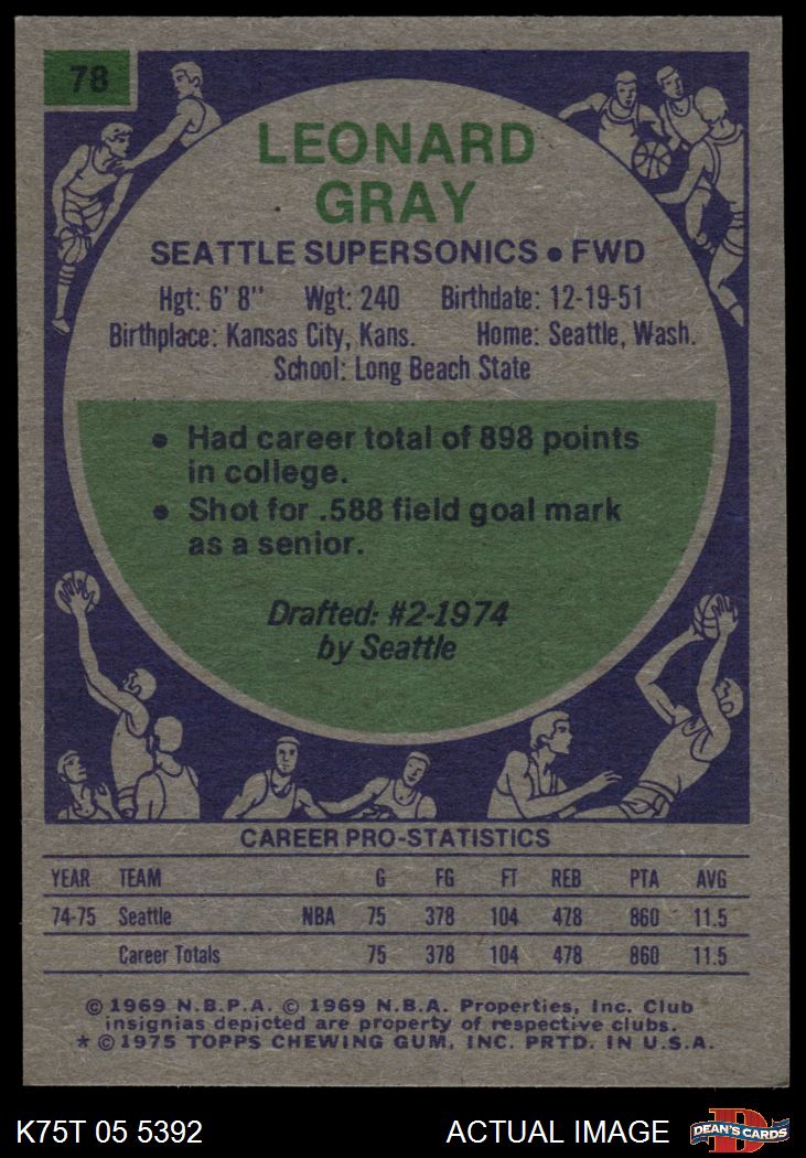 1975 Topps #78 Leonard Gray 6 - EX/MT