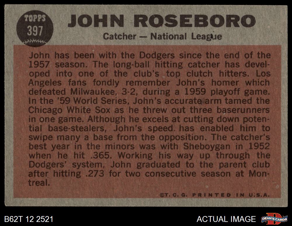 1962 Topps #397 - John Roseboro All-Star 2 - GOOD