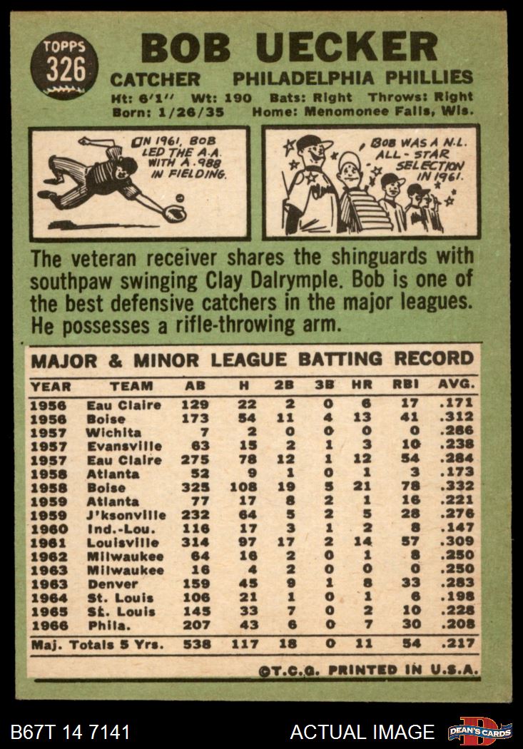 1967 Topps #326 Bob Uecker 4 - VG/EX