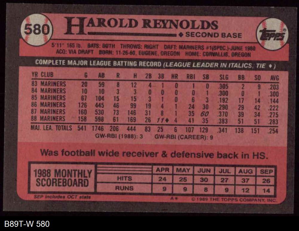 1989 Topps #580 Harold Reynolds 8 - NM/MT