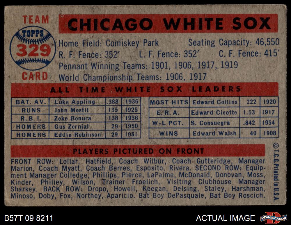 1957 Topps #329 White Sox Team 1.5 - FAIR