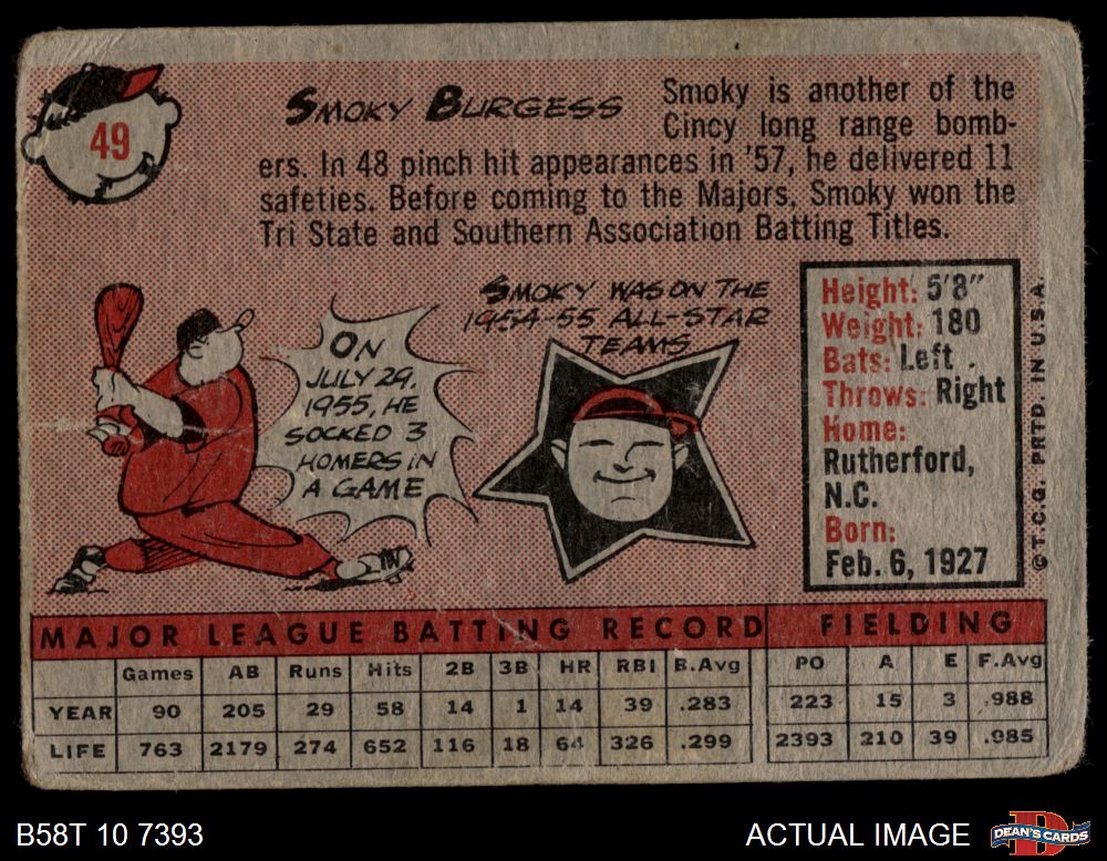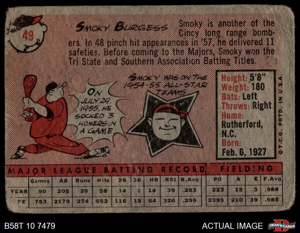 1958 Topps #49 Smoky Burgess AUTHENTIC